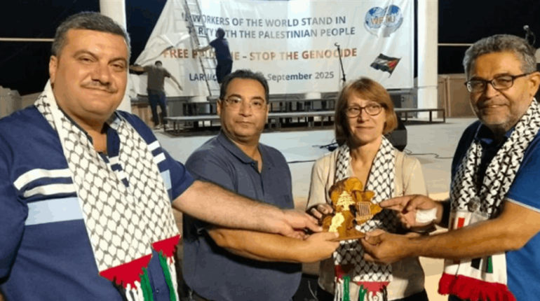 على هامش فعاليات المؤتمر الذي دعا إليه اتحاد النقابات العالمي في مدينة لارنكا – قبرص، قدم الوفد العمالي اللبناني المؤلف من علي طاهر ياسين وشادي السيد ومحمد إبراهيم، درعا تقديرية للأمينة العامة لاتحاد نقابات عمال قبرص سوتيرولا خار الامبوس، وذلك “تقديرا لجهودها المستمرة في الدفاع عن قضايا العمال، لا سيما في غزة ودعمها الثابت لحركات […]