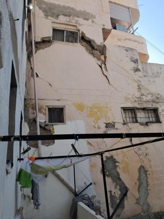 بالصور… إخلاء مبنى سكنيّ بعد إنهيار جزء منه