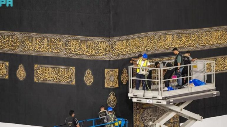 لحمايتها من التلامس أو التلف.. مكة المكرمة: إنهاء أعمال رفع الجزء السفلي من كسوة الكعبة